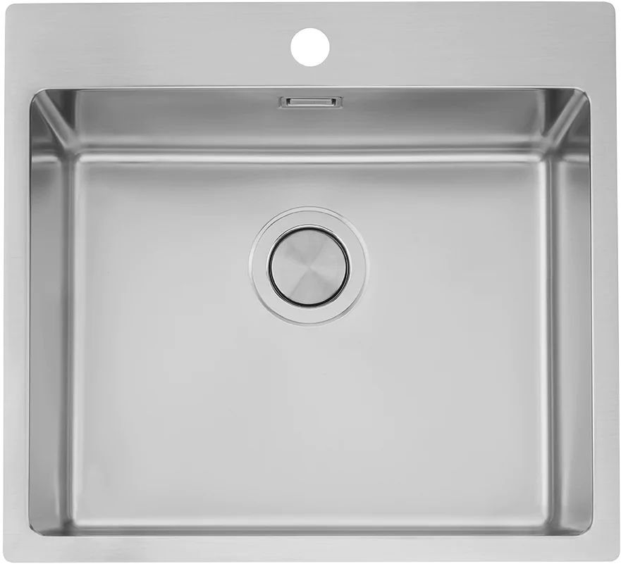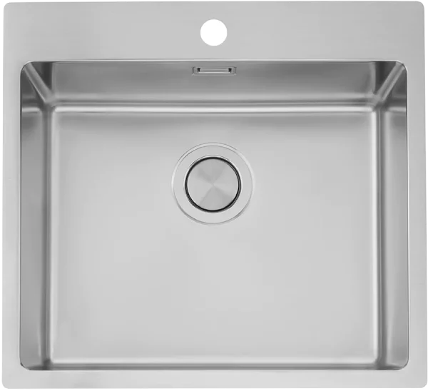 Stainless steel sink with thin rim. Minimum cabinet width 600 mm.